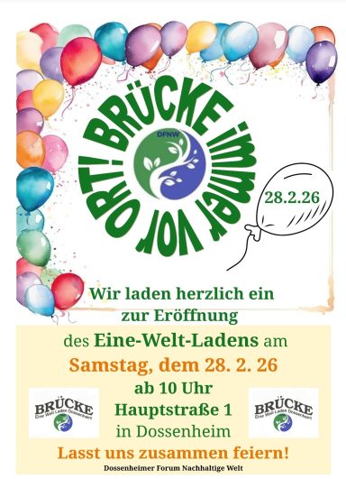 Mit Beginn des Jahres 2025 hat unser Verein die Verantwortung für das Geschäft des Eine-Welt-Ladens „Brücke“ in Dossenheim übernommen. Die bisherige, 30 Jahre währende Trägerschaft seitens des Peru-Kreises in Dossenheim endete gleichzeitig. Der Wechsel erfolgte einvernehmlich.